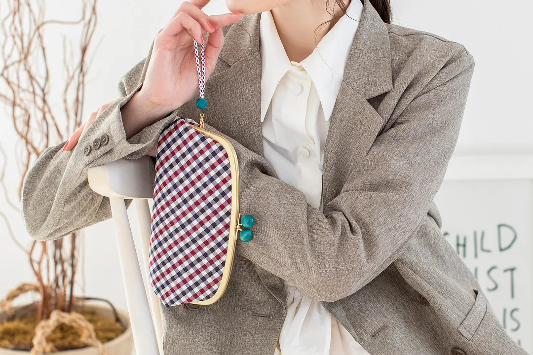 【京都を代表する伝統工芸「西陣織」と「京組紐」が同時に楽しめる日本製のがま口長財布】 ●鮮やかな発色は他の追随を許さず、ヤスラ経(タテ)で織られた美しいギンガムチェック *ヤスラタテとは白と黒、二色のタテ色が一つの織機にかかっている経の事を呼びます。色の組み合わせは様々ですが、今回は白と黒のタテ色を選択しました。 織物の特徴としてタテ糸とヨコ糸が様々な織組織として絡み合い、経色によって微妙な色合いに変化する事が挙げられます。ギンガムチェックのような多色使いの柄を織る場合、タテ色が1色だとどうしても色が濁って見える部分が出てしまいます、ですがこの商品に使ったヤスラ経はヨコ糸の色に合わせて表面に出るタテ糸を変化させる事が出来るので、発色がより美しく仕上がっています。 プリントでは表現出来ない、織物ならではの繊細さ、光の当たり方によって絶妙な色の変化を楽しむことが出来ます。余分な加工を省いた正絹を使用したオリジナルの西陣織の生地、手に触れるたびに繊細な手触り、絹ならではの美しい光沢は所有した者だけが感じられる至福です。 ●持ち運びにも便利!京組紐で組まれたオリジナルの正絹ストラップ付 この商品の為だけに作られたオリジナルの、本体生地の色に合わせた京組紐ストラップ。財布本体のギンガムチェックと同じ配色にする事で、後付け感の無い商品としての完成度を高めました。ストラップ自体の取り外しは可能なので、取り外して別の物に付けたり、お手持ちのストラップを財布に付けたりそれぞれお好きなデコレーションをお楽しみください。 またストラップが付いているので持ち易く、バッグの中にも入れやすく取り出しやすいです。 素材は正絹(シルク)で、何本もの細い糸を職人が手作業で編み上げているため、丈夫で厚みのある仕上がりになっています。シルクならではの美しい艶が堪能できます。 *この組紐の編み方は”江戸打”と呼ばれているものです。糸を結ぶ玉(重り)が八つで組まれた為、別名「八つ組」とも呼ばれています。 紐のシンプルな構造を活かし、配色の美しさに拘りました。全体に散りばめられた複数の色が、一本の美しい紐として成り立つ配色の妙をお楽しみください。 ストラップの丸い部分は 小田巻(おだまき、苧環とも)と呼ばれています。つむいだ糸で中を空洞にして丸く巻き付けたもので、くるくると廻るので「繰り返す」という枕詞にもなっています。 この苧環が元で名付けられた「オダマキ」という花の花言葉は、「必ず手に入れる」「断固として勝つ」などです。 ●財布機能は勿論、スマホもすっぽり入る大容量が自慢のがま口財布 がま口の開閉部分には天然のゴムの木を使いました。(強い陽射しの照りつける南国が原産地のゴムの木は、風水上「陽の気」を持つものとされているそうです、開けるたびに運気がアップするかもしれません) 良く手に触れる部分なので、大きめのサイズが片手でも開閉し易く、手も痛くなり難いです。色もストラップの小田巻と同じ色に合わせているので、統一感もバッチリです。 内側には長く使って頂けるように丈夫な綿を使用、色は落ち着いたベージュを合わせました。 内部にはがま口式の小銭入れ、カード入れ×12、札入れ(オープンポケット)×2と財布として必要十分な収納力です。 また普通の長財布では難しいですが、スマートフォンも財布の内部に入れて持ち運べます。ランチタイムなど財布だけで出かけられるので、とっても便利ですよ。ストラップが付いているので、持ち運びも簡単です。 *強い力をかけると金具部分が破損する恐れがあります、ご使用時は十分ご注意下さい。 ●熟練の財布職人が全て手作業で制作、美しいシルエットと耐久性、全てのパーツが安心の日本製 物が溢れているこの時代、安かろう悪かろうで妥協して選びがちではありませんか?大量生産品では出来ない職人が一点一点魂を込めて生み出したこの財布なら丈夫で長持ち、不意な買い替えは必要ありません。 財布は毎日使うものです、安物買いの銭失いとは良く言いますが、長く使える財布を買う事が最も節約になるのではないでしょうか。日本が世界に誇る西陣織の財布を使いながら日本の技術ってやっぱり素晴らしいなと再確認して頂ければ嬉しく思います。 海外に生産を移す工場が殆どの中、国産100%で財布を作り続ける工場で全て制作しています。有名ブランドの財布なども手掛けているので、その品質はお墨付きです。