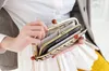 【京都を代表する伝統工芸「西陣織」と「京組紐」が同時に楽しめる日本製のがま口長財布】 ●鮮やかな発色は他の追随を許さず、ヤスラ経(タテ)で織られた美しいギンガムチェック *ヤスラタテとは白と黒、二色のタテ色が一つの織機にかかっている経の事を呼びます。色の組み合わせは様々ですが、今回は白と黒のタテ色を選択しました。 織物の特徴としてタテ糸とヨコ糸が様々な織組織として絡み合い、経色によって微妙な色合いに変化する事が挙げられます。ギンガムチェックのような多色使いの柄を織る場合、タテ色が1色だとどうしても色が濁って見える部分が出てしまいます、ですがこの商品に使ったヤスラ経はヨコ糸の色に合わせて表面に出るタテ糸を変化させる事が出来るので、発色がより美しく仕上がっています。 プリントでは表現出来ない、織物ならではの繊細さ、光の当たり方によって絶妙な色の変化を楽しむことが出来ます。余分な加工を省いた正絹を使用したオリジナルの西陣織の生地、手に触れるたびに繊細な手触り、絹ならではの美しい光沢は所有した者だけが感じられる至福です。 ●持ち運びにも便利!京組紐で組まれたオリジナルの正絹ストラップ付 この商品の為だけに作られたオリジナルの、本体生地の色に合わせた京組紐ストラップ。財布本体のギンガムチェックと同じ配色にする事で、後付け感の無い商品としての完成度を高めました。ストラップ自体の取り外しは可能なので、取り外して別の物に付けたり、お手持ちのストラップを財布に付けたりそれぞれお好きなデコレーションをお楽しみください。 またストラップが付いているので持ち易く、バッグの中にも入れやすく取り出しやすいです。 素材は正絹(シルク)で、何本もの細い糸を職人が手作業で編み上げているため、丈夫で厚みのある仕上がりになっています。シルクならではの美しい艶が堪能できます。 *この組紐の編み方は”江戸打”と呼ばれているものです。糸を結ぶ玉(重り)が八つで組まれた為、別名「八つ組」とも呼ばれています。 紐のシンプルな構造を活かし、配色の美しさに拘りました。全体に散りばめられた複数の色が、一本の美しい紐として成り立つ配色の妙をお楽しみください。 ストラップの丸い部分は 小田巻(おだまき、苧環とも)と呼ばれています。つむいだ糸で中を空洞にして丸く巻き付けたもので、くるくると廻るので「繰り返す」という枕詞にもなっています。 この苧環が元で名付けられた「オダマキ」という花の花言葉は、「必ず手に入れる」「断固として勝つ」などです。 ●財布機能は勿論、スマホもすっぽり入る大容量が自慢のがま口財布 がま口の開閉部分には天然のゴムの木を使いました。(強い陽射しの照りつける南国が原産地のゴムの木は、風水上「陽の気」を持つものとされているそうです、開けるたびに運気がアップするかもしれません) 良く手に触れる部分なので、大きめのサイズが片手でも開閉し易く、手も痛くなり難いです。色もストラップの小田巻と同じ色に合わせているので、統一感もバッチリです。 内側には長く使って頂けるように丈夫な綿を使用、色は落ち着いたベージュを合わせました。 内部にはがま口式の小銭入れ、カード入れ×12、札入れ(オープンポケット)×2と財布として必要十分な収納力です。 また普通の長財布では難しいですが、スマートフォンも財布の内部に入れて持ち運べます。ランチタイムなど財布だけで出かけられるので、とっても便利ですよ。ストラップが付いているので、持ち運びも簡単です。 *強い力をかけると金具部分が破損する恐れがあります、ご使用時は十分ご注意下さい。 ●熟練の財布職人が全て手作業で制作、美しいシルエットと耐久性、全てのパーツが安心の日本製 物が溢れているこの時代、安かろう悪かろうで妥協して選びがちではありませんか?大量生産品では出来ない職人が一点一点魂を込めて生み出したこの財布なら丈夫で長持ち、不意な買い替えは必要ありません。 財布は毎日使うものです、安物買いの銭失いとは良く言いますが、長く使える財布を買う事が最も節約になるのではないでしょうか。日本が世界に誇る西陣織の財布を使いながら日本の技術ってやっぱり素晴らしいなと再確認して頂ければ嬉しく思います。 海外に生産を移す工場が殆どの中、国産100%で財布を作り続ける工場で全て制作しています。有名ブランドの財布なども手掛けているので、その品質はお墨付きです。