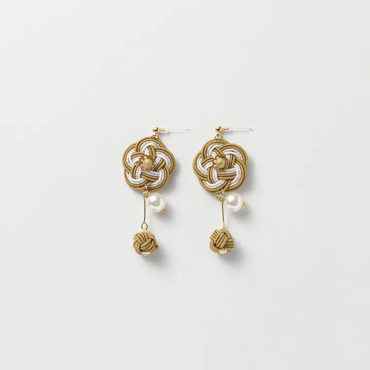 日本の伝統技法「梅結び」と「淡路玉」を組み合わせた、上品で華やかなイアリング。梅結びは縁起の良い結びとされ、幸福や良縁を願う象徴。淡路玉の繊細なフォルムが軽やかに揺れ、耳元に優雅なアクセントを添えます。動くたびに揺れる淡路玉が、女性らしさを引き立てます。特別な日のおしゃれにも、日常のさりげないアクセントにも。和の伝統美を、耳元で楽しんでみませんか?