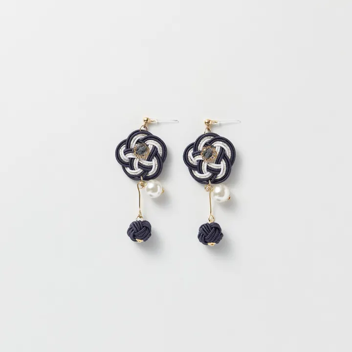 日本の伝統技法「梅結び」と「淡路玉」を組み合わせた、上品で華やかなイアリング。梅結びは縁起の良い結びとされ、幸福や良縁を願う象徴。淡路玉の繊細なフォルムが軽やかに揺れ、耳元に優雅なアクセントを添えます。動くたびに揺れる淡路玉が、女性らしさを引き立てます。特別な日のおしゃれにも、日常のさりげないアクセントにも。和の伝統美を、耳元で楽しんでみませんか?