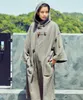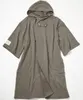<素材> 特殊撚糸技術を使って作った裏毛素材を使用していて、吸水性があります。 肌側のパイル面はふわふわというよりはさらっとした表面感で触れた感触もさらっと心地よいです。 <デザイン> フード付きのロングガウンです。 サウナやお風呂後などのシーンだけでなく、カジュアルにタウンユースにと普段使いでもOKです。 また夏~秋のキャンプ地の肌寒い時の羽織りにも◎。 フリーサイズの展開でジェンダーレスでお使いいただけます。