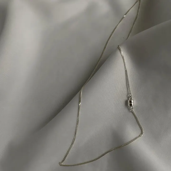 ※本商品は楽天市場、ヤフーなどのECモールでの販売はお断りしています。あらかじめご了承ください。 - flat necklace 01 - 華奢ながら胸元を輝かせてくれるネックレスです。 その秘密はチェーンにカットが入っているため繊細な輝きを放ってくれます。 シーンレスにお使いいただけて着けやすいデザインです。 こちらは磁石式の金具で出来ているため、デザインのマイナスポイントになりがちな金具をデザインの一部として取り入れることが出来ました。 また磁石式のため、急いでる朝にもスッと身に着けれて、着けた時の心地よい音も感じて頂きたいです。 ※外す際にはチェーンを引っ張らないよう、金具の隙間に爪を入れながら外すとスルッと離れます。