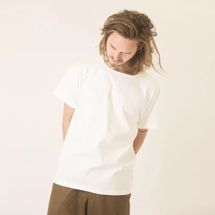 MATERIAL : ORGANIC COTTON 100% / 5.75oz MADE IN U.S.A. ショートスリーブのスクープTシャツ。 “S.O.S. from Texas”の全ての商品は、NOP (全米オーガニックプログラム) が定めるUSDA Organic (アメリカ合衆国農務省)、TDA Organic (テキサス州農務局) の認証を取得した自社の有機農場で栽培されるオーガニックコットンを使用しています。正真正銘の“100% ORGANIC COTTON”は、高品質で安心。肌に優しく、柔らかな素材感が特徴です。 クルーネックと比べ天幅が広く、前下がりが浅めの緩やかなネックラインと袖周りも細く、すっきりとしたシルエットが特徴的。古くから使われている丸編み機を用い、両脇に縫い目がない筒状の丸胴仕様は、身幅に程よいゆとりが生まれ、洗濯時のねじれも軽減されます。 原料である綿花の栽培から製品の縫製までをアメリカ国内で一貫する “100% ORGANIC , 100% MADE IN USA”を、今も尚続ける数少ないファーマーズブランド。 モノや洋服が溢れるほど生産される現代。毎日身につけるものだからこそ、身体に、地球にストレスの無いサステイナブルなものを届けたい。S.O.S. from Texasのプロダクトにはそんな想いが込められています。