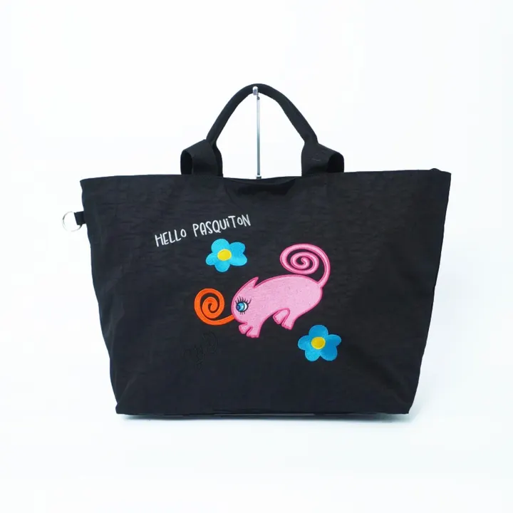 【商品説明】アーティストYUのパスキートンフレンズの刺繍がとてもキュートです。 ▲お取り扱いの注意 本製品は濃色、刺繍糸の色落ちすることがあります 洗濯は単独で洗って下さい。 〔サイズ詳細〕 高さ 37㎝ 横幅〔上部〕60㎝ 横幅〔下部〕44㎝ マチ 18㎝ ハンドルの高さ 15.5センチ ショルダーの高さ 36㎝ 〔素材〕 ポリエステル100% made in china 旅先でも可愛いバッグを持ちたい、そんなあなたにおすすめのトラベルbag。軽くて丈夫なので、旅行にも日常にもぴったりです。pasquitonキャラクターの刺繍があしらわれたデザインは、きっとたくさんの人の目を引きます。 特に、このバッグの素材は洗えるのが嬉しいポイント。旅行先で汚れが気になっても、帰ってすぐに洗えばいつでも清潔に使えます。また、コンパクトなので旅先での機内持ち込みにもオススメです。 このトラベルbagを持って旅に出かけると、一気に気分も上がります。普段使いでも可愛く持てるので、ぜひ一つ持っておくと便利です。