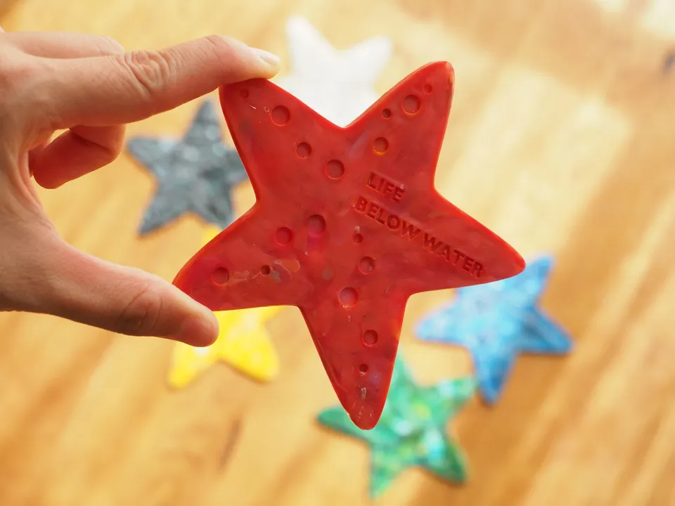 海洋プラスチックごみを材料に変えるブランドbuoy(ブイ)の、海洋生物のコースター「ヒトデ」です。 buoyの製品は全て着色などの加工を加えず、偶然海岸に漂着した色味でできています。 明るい発色が特徴のプラスチックですが、複数の色が交じり合うことでちょっと有機的なモザイク模様が特徴です。 海が好きな人や、カラフルな色味が好きな人、へのちょっとした贈り物にピッタリなアイテムになっております。 <buoyコースター 仕様> サイズ:グラスにぴったりな直径9㎝。 ☆buoyコースターデザインの特徴☆ ①材料となった海洋ごみの回収地域が刻印 今までシール添付だった回収地域の表示が製品に刻印されるようになりました。洗ったり、複数の産地(回収地域)を購入してもわからなくなりません。よりbuoyを長く大事にしていただけるよう考えました。 ②グラスに張り付きにくくする溝 イラストが凹凸になっており、グラス張り付きを防ぎます。 ------------------------------------------------------------------- 海洋プラスチックごみを材料に変える独自技術buoyの特徴 (buoyは海洋プラスチックごみ素材使用を前提にした株式会社テクノラボの独自技術により成形しています。株式会社テクノラボは本技術において特許取得済み) ◆材料を分けないで成形するため生まれる独自の模様 材料はすべて着色せず海洋ごみの色を活かして成形しています。偶然生まれる色と模様は回収された漂着ごみによって決まります。 ◆製品の重さが海洋ごみの重さ 製品をコーティングしているフィルム以外、混ぜ物などせず海洋ごみでできているので製品の重みから海洋ごみ問題を感じられます。 ◆製品にすべて材料の漂着地を明記 buoyは日本各地のビーチクリーンボランティアや企業の方から材料を提供していただいています。これらの材料は時期と地域を分けて管理され、製品にはすべて材料産地のシールを貼り販売しています。 buoyの材料産地をきっかけに回収された地域のことを知ってほしいとの思いからbuoyでは団体様の紹介ページを作成しています。 http://www.techno-labo.com/rebirth/partner/ -------------------------------------------------------------------
