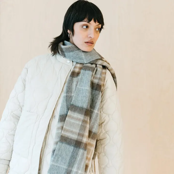 ★ラムウール素材の大判スカーフ ラムウールは最高級の羊毛で、他のウールに比べて伸縮性に優れています。 ウールの一本一本の縮れが空気のポケットをつくり、温かさを保ちながら湿度を寄せ付けない働きをするので、暑い時には涼しく寒い時には温かく保ってくれます。 自然の保温性と通気性を兼ね備えた低アレルギー性のラムウール生地は、非常に柔らかで耐久性もあります。 【ブランド紹介】 ザ・タータン・ブランケット・コーは、伝統的なタータンチェックを採用しながらも、 サステナブルな素材で新しいデザインを追求したスコットランド生まれのブランケットブランド。リサイクル素材には、衣服で使用されたウールを再利用し、再生繊維とブレンドすることで、柔らかく耐久性のあるブランケットに仕上げています。 また、年間収益の2%は、豊かな自然を維持する慈善団体と最も困窮している人々を支援する慈善団体に寄付しています。