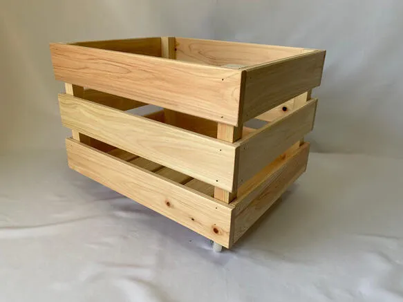 安心安全の国産ひのきを使用した収納ボックスになります。 無塗装の天然ひのきを使用しています。ひのきのいい香りがします。 サイズ:外寸 約たて414×よこ324×たかさ310㎜     内寸 約たて340×よこ250×たかさ250㎜ キャスター付きのため楽に移動できます。 おもちゃ、日用品、ペットボトルなどの収納に便利です。 ペットボトルは2リットルのものが6本入ります。 *1天然ひのき使用のためヤニがでてくる場合があります。これは木本来の良さであり、木が健康な証拠です。雑菌の繁殖を抑え、防腐性を高めるものになります。ヤニが気になる場合は、お湯やアルコールでふき取ってください。 *2天然素材のため反りや小ヒビが発生する場合があります。 *3カット時の小さなささくれが残ってる場合があります。ささくれが気になる場合は紙ヤスリでこするときれいになります。 *4無塗装のため変色します。(日に当たると変色が早いです。)