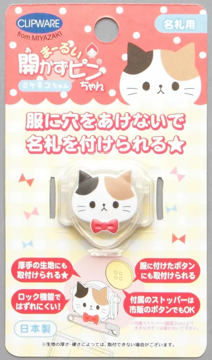 服に穴を開けない名札用留め具「開かずピンちゃん」シリーズを展開