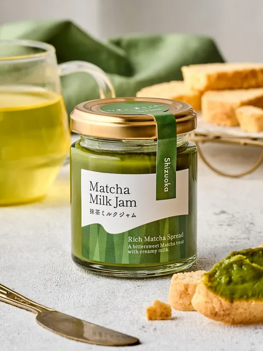 インバウンドのお客様にも大人気! 日本テレビZIPの『水卜あさ美と一緒にあさごはん』で紹介されました! 香料や着色料は使わず、 静岡の高級抹茶と粉末緑茶、牛乳、生クリーム、砂糖で作ったミルクジャム。 フレンチシェフ監修 じっくり焦げないように煮詰めて詰めて、 丁寧に作られたミルクジャム。 ミルクの濃厚さと甘さだけでなく、お茶のほろ苦さと爽やかさが後味まで美味しい。 パンやクラッカー、フルーツをつけたり、 アイスに付けてもオススメです。 自分へのプチ贅沢や贈り物にもおススメです。 甘さレベル★★★★☆
