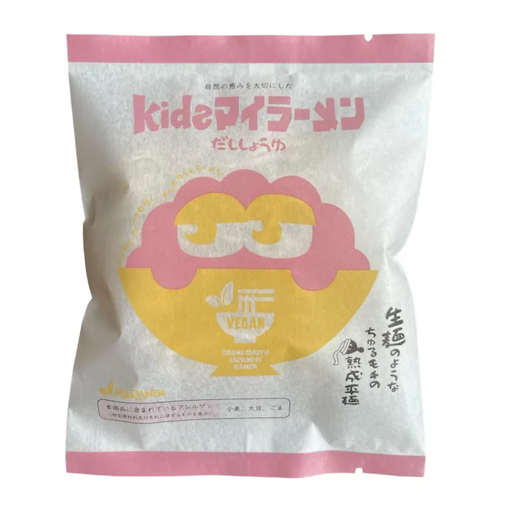 🎁🎁🎁旧パッケージ⭐️SALE開催中🎁🎁🎁 たくさんの “はじめて” を、 このパッケージと一緒に届けることができました。 🌱「アレルギーがあっても、みんなと同じものが食べられた」 🍴「子どもが、はじめて完食した」 そんな声に、私たちは何度も励まされてきました。 そして、こうした声が届くのも、 キッズマイラーメンを選び、扱ってくださったバイヤーの皆さまのおかげです。 そこで── すべてのバイヤー様に、心からのありがとうを込めて。 🛒 旧パッケージセール中! ※ 在庫切れの場合はご容赦ください🙏 ⸻ 🍁🍁🍁 9月リニューアル! 🍁🍁🍁 お届けするのは── 「日本の色」を意識した、暮らしに馴染むおしゃれな新パッケージ✨ 💝 近日、大公開! 🧂さらに【塩フレーバー】は、液体スープへとリニューアル! よりまろやかに、やさしく美味しく生まれ変わります💫 ※ その他のフレーバーは中身の変更はございません ⸻ 👶これからも、キッズマイラーメンは ご家庭の食卓にそっと寄り添っていけたら嬉しいです🍜 引き続きどうぞよろしくお願いいたします! ✨✨✨✨✨✨✨✨✨✨✨✨✨✨✨✨✨✨ 【Kids MyRAMENのすべてがここに。】 冷たいレシピや商品のご紹介はもちろん、 わたしたちの想いや、お客様の口コミ、公式SNSまで ぜんぶ下記リンクからチェックできます👀 https://lit.link/kidsmyramen ✨✨✨✨✨✨✨✨✨✨✨✨✨✨✨✨✨✨ ※ 入り数と地域別送料表は画像の最後に掲載しています。ご覧いただきご検討くださいませ。 ※ 私たちの想いはこちらから ▶️ https://myramen.myshopify.com/pages/%E4%BC%81%E6%A5%AD%E7%90%86%E5%BF%B5 ※ youtube再生回数3万回超え! ▶️ https://www.youtube.com/@kidsmyramen  今後更なる認知拡大に努めてまいります! ーーーーーーーーーーーーーーーーーーーー 手軽で美味しい子どもが大好きなインスタントラーメン! だけどカラダに悪そうで罪悪感を感じる大人たち。 kidsマイラーメンなら! ノンフライ麺でヴィーガン、添加物に頼らず余計なものを省き、自然の恵みを大切にした子どもに優しいラーメンです。なのに大人が横取りしたくなる美味しさ! さらに特定原材料28品目中のアレルゲンは「小麦、大豆、ごま」のみ。 素材本来の味わいを活かし、子どもの味覚の成長を促します。 可愛いパッケージでぷちギフトや手土産にも! 【麺】 湿度や温度、時間を微調整しながら2日かけて熟成させる「2段階熟成」のノンフライ麺。余計な脂質を排除し、生麺のようなちゅるモチ食感となりました。また、子どもがフォークで食べやすい平麺を採用。自分で食べられたという達成感も味わえます。しっかり大人一人前の麺量なので、家族皆でお楽しみいただけます。 【スープ】 だししょうゆ…醤油の芳醇な香りが際立つ、野菜の甘みを活かした液体スープ。 こんぶしお…昆布の潮の香りと野菜の旨みたっぷりの粉末スープ。 こっくりみそ…味噌の香りと旨みをダイレクトに味わう、ほんのり甘みとコクのあるサラッとした液体スープ。 子どものお腹に負担の少ない植物油脂のヴィーガン。スープは添加物不使用なので、素材本来の味わいを感じ、味覚の成長を促します。「自然の恵みへの感謝」「動物への配慮」といった食育も大切にしています。 ※ 具材は入っておりません。 【地球にも優しく】 「青く美しい地球を未来の子どもたちへ残したい!」 そんな想いから、外袋の一部には環境に配慮した紙とバイオマスインクを使用。(保存料不使用のため、保存に適したプラスチックも採用しています。)SDGs目標17のうち4つの項目に取り組んでいます。 子供から大人まで食べられるよう麺量は大人一人前! 家族みんなで食卓を囲む幸せを、kidsマイラーメンと一緒に。