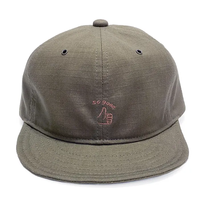 薄手でしっかりとした質感のリップストップ生地を使用したショートつばのキャップ。カラーによって異なるハンドサイン刺繍のデザインがポイントです。カラバリも豊富なので、色違いでも欲しいアイテムです。