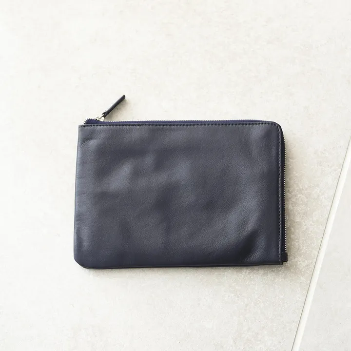 【見やすいL字ファスナー】本革 ポーチ 小物入れ ブランド クラッチバッグ / PB1 ダークネイビー