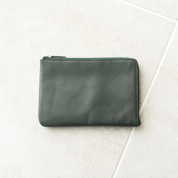 【見やすいL字ファスナー】本革 ポーチ 小物入れ ブランド クラッチバッグ / PB1 ディープグリーン