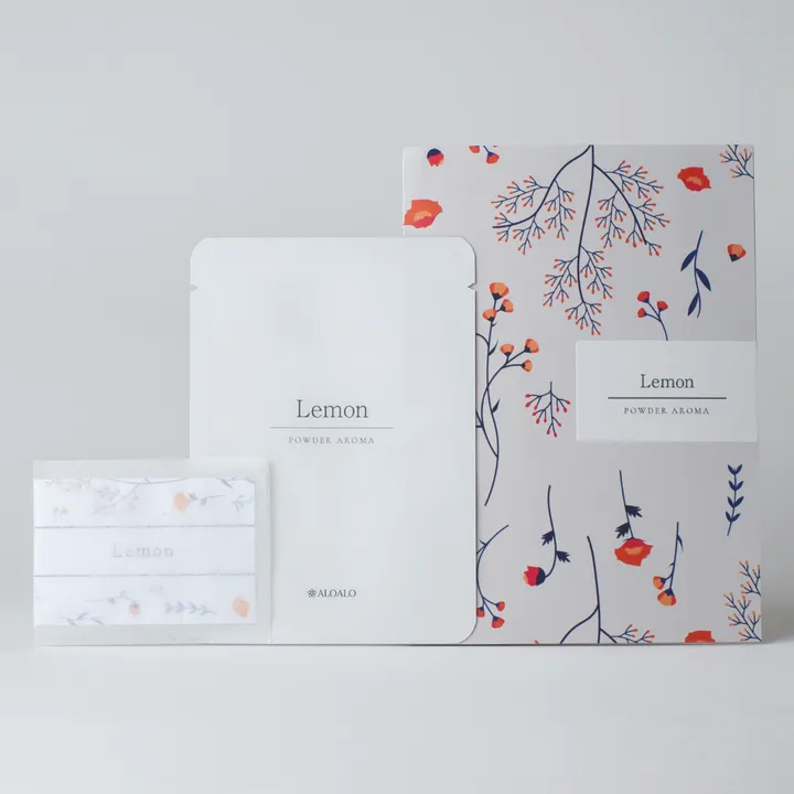アロマ業界初の【POWDER AROMA】は、手軽さを追い求めて生まれたアルミ袋を開封するだけの簡単アロマ。ラベルにロゴやメッセージをお入れするPBが人気です。