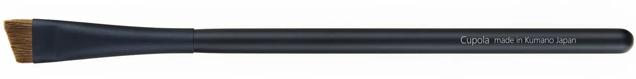 B 001【EYE BROW BRUSH / アイブロウブラシ】 描きやすいのはもちろんのこと、肌へのあたりがやさしく、どんな眉の形も可能にする幅と厚みにこだわっています。特にお悩みの多い眉に対応し、筆先の左右の長さが異なることで、山を作りやすく眉頭をぼかす際に適しています。 パウダーが密着しやすい馬毛は肌へのあたりが気になることがありますが、PBT(人工毛)とミックスすることで、程よい柔らかな質感が可能になりました。 ◆POINT◆ 斜めの形でできているこの筆を上手く使うポイントは、長い方を常に鼻側に向けて使用することで、濃すぎる印象を避けることができます。短い方は眉尻を綺麗に仕上げます。 眉を綺麗に描くポイントは、筆先の長い方で眉頭をワントーン薄い色で毛流れにそって入れると自然な眉に仕上がります。 ◆Cupola made in Kumano◆ ・Cupolaのメイクアップブラシは、サステナビリティ、デザイン、機能性を兼ね備えた製品です。大手化粧品メーカーと同じ工房で作られ穂先の信頼性を保証する一方で、20年以上のキャリアを持つメイクアップアーティストNATSUKAがプロデュースしています。 ・伝統産業である熊野筆は、毛先を切らずに職人の手技で穂先の形状を整えることで、穂先の柔らかさを実現し、肌へのやさしい触感を特徴としています。 ・柄のビジュアルは、黒色を用いることで高級感とエレガンスを演出し、マットな質感でカジュアルさも兼ね備えています。また、持ちやすさと使用感の快適さを追求し、柄の長さ・太さ・細さも最適化されています。 ・メイク初心者からモチベーションが高い人々まで、そしてジェンダーレスかつエイジレスに心地よく使っていただけるように配慮しています。 ・海外から旅行などに来られる方々にとっても、日本の伝統工芸品である熊野筆は最適な商品です。熊野筆は世界でも人気が高く、Cupolaのエッジの利いたデザインは、Shopや百貨店様でお土産としても大変ご好評をいただいております。海外からのお客様へのギフトとしても最適であり、Londonのセレクトショップでも地元のお客様に大変ご好評いただいております。 ・ご友人やパートナーへのギフトとして、ホワイトデーやクリスマスなどのシーズンギフト、お土産としても喜ばれる商品であることも重視しています。価格帯は¥1,100~¥6,000と幅広く、迷ってしまう方にはセットブラシもご用意しています。心温まるギフトは本当に喜ばれますし、送った方も喜んでくれる商品です。 ・A4三つ折りリーフレット、ギフト用の価格未記載リーフレットのご用意があります。 ・Cupolaのキービジュアルであるロゴとイラストは、世界的メゾンや百貨店に作品を提供するなど世界的に活躍するイラストレーター、プシェメク・ソブツキ(Przemek Sobocki)がデザインを手がけています。 ・ディスプレイの什器も受注販売しております。工房へ委託する為、2か月ほどお時間を頂きます。