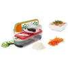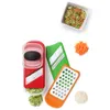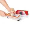 おろしやスライスに便利なセット 大根おろし、スライサー、千切りの3種類のブレート(刃)のコンパクトで便利なセットです。 半透明のケースのフタは食材を受け止めるコンテナにもなります。底面には2か所の滑り止めのアシが付いていて、作業中もしっかり安定します。またカットした量の目安が分かる目盛りがついています。 それぞれのブレード(刃)はボウルやお皿の上で直接使うことも可能です。食材が小さくなっても、手指を傷つけないようフードホルダーがついていますので安心です。 すべてのパーツはケースに入れて、コンパクトに収納できます。ボックス入りで贈り物にも最適。 各ブレードは漂白剤はご使用いただけません。(フタ/ケース/フードホルダーは可)。食器洗い乾燥機(低温設定)がご使用いただけます