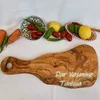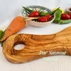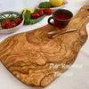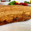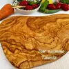 サイズ:全長約54×17~23×持ち手部分16×厚み1.5cm 穴約3.5cm *人気のオリーブの木の超かっこいいカッティングボードシリーズです。北アフリカの雨があまり降らない大地で400年以上生き抜いたオリーブの木の圧倒的な木目が特徴「大自然のアート」 *オリーブの木 特有の滑らかな形、木目の表情は大自然の恵みの力をそのまま残した生命力溢れる絶品です。これぞ北アフリカの大自然アート、長い年月の間、厳しい自然の中を何百年も生き抜き育った結果が表れています。この作品には圧倒的な「見ごたえ」があります。目にするたびに喜びと元気が湧き出ることでしょう!!北アフリカではオリーブの木は1000年近くも生きる不死身「聖なる木」とされます。 *400年前後の古木を使っているためモノによっては古木ならではの自然な亀裂がございます。 *キッチンで使ったり、テーブルウェアとして使ったり、はたまたインテリアとしてその存在感を発揮させたりと楽しみ方は無限大。程よい大きさは、卓上でパンやチーズ、オードブルやフルーツを盛り付けるのにも最適です。生ハムなどの盛り付けにも。そのままお皿としてご利用いただくこともできます。 *オリーブの一枚板から取った無垢のまな板です。 *食卓以外でもアクセサリーや陶器などディスプレイにも素材力を発揮し、お料理だけでなくさ *地中海の恵みをたっぷり浴びたオリーブの木は、ゆっくりと成長するので大きな木になるには何百年とかかります。その為、木の密度は高くなり、硬く傷つきにくくなります。色が変わってきたらオリーブオイルを塗ってください。長く使っていただける一品です。まざまな小物のステージを演出してくれるでしょう。