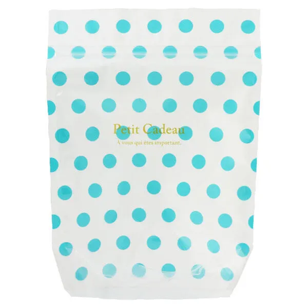 【ZIP POCKET (M)  dot mintblue】 ●マチ付きで、小物や「食品を直接入れる」ことも可能な  ジップポケット(Mサイズ)。  ●Mサイズ … 18柄 、Sサイズ … 14柄 の展開で、お得な5枚入りです。 ●おもてが透明なので、中に入れたものが見えます。 ●こちらの商品は食品を直接入れていただけます。 (食品衛生法の規格基準に適合しています)