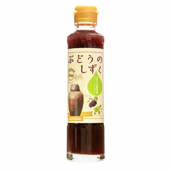 ・露天に並べられた甕壺(かめつぼ)の中にピオーネ、シャインマスカット、果汁を入れて1年以上発酵させた果実酢(ぶどう酢)を配合 ・米麹で発酵させることでアミノ酸も含むぶどう酢に。 ・甘味は身体のことを考えてオリゴ糖と黒糖のみで上白糖や果糖ぶどう糖液糖などは不使用 ・お子様やお酢が得意でない方にもおいしく飲んでいただけるぶどうの香りがフワッとして幸せな気分を味わえるフルーツビネガー ・化学調味料、酵母エキス、酸味料、保存料無添加、ノンカフェインだから小さなお子様にも安心してお飲みいただけます ・お水や炭酸水で3~7倍程度に希釈してお飲み下さい。アイスやヨーグルトに入れていただくと美味しく召し上がっていただけます。お酒好きな方は、焼酎やビールなどに適量入れてお飲み下さい。