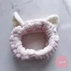 キジネコ風、茶トラ風、ロイヤルブルー風のネコ耳がついたキュートなヘアバンド達。 プレゼントにもぴったりな可愛いケース入りなのも人気のヒミツです。 幅広なので顔まわりの髪をしっかりキープ。 メイクや洗顔時にとても便利です。 ピンク、ブルー、ホワイトの3色の新色も中間入りしました。
