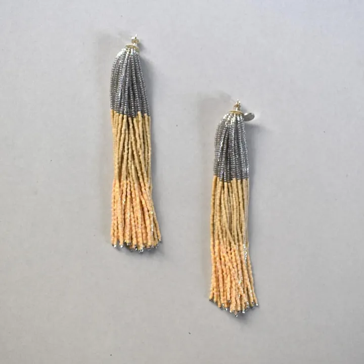 日当たりがよく乾燥した草原に多く育つススキ銀白色の穂がやさしく揺れる草原は 日本の秋を象徴する原風景のひとつです 古来日本では 背の高い稲穂は神様が降り立つ 依り代(よりしろ)だと信じられてきたため 中秋の名月の夜 満月に模した月見団子といっしょに 供えられます *こちらの商品は、お客さまの耳の形状やピアスホールの位置によっては、装着位置がご満足いただけない場合がございます。 material SILVER925(ピアス金具)、ガラスビーズ、銀糸、真鍮、チタン、フェルト、本革、シリコン *シルバービーズはパラジウムッキ加工を施したものを使用しております *下地カラーはベージュに変更しております size 約20x125mm weight 約12.2g *CACICOの商品は全て1点1点制作しているため、個体差があり、商品写真と差がある場合がございます。ご了承の上、ご購入ください。 *金属アレルギーの方はご使用をお控えください *受注生産のため、ご注文確定後1週間〜10日以内に商品を発送いたします