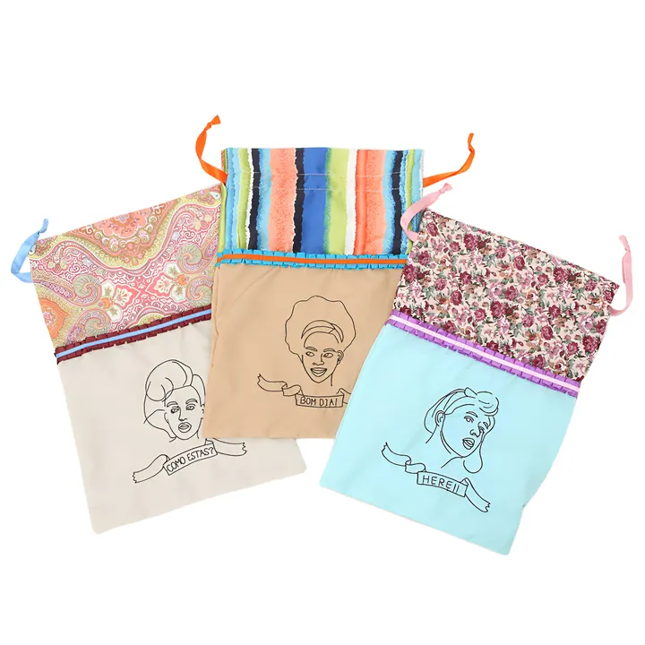 大きめサイズの巾着はアイデア次第で色々な使い方が出来そう! ルームウェアや下着を収納したり、コテやアイロンなどコードがかさばる美容製品もサッとひとまとめに。 Faceシリーズは、アメリカ(サックス)・ブラジル(ベージュ)・スペイン(アイボリー)とカラーごとに違った国の女性をイメージしたスパイスの効いた個性的なデザイン。 あなたのお気に入りの国や、パーソナリティに近いイメージの国の女性が描かれたデザインをライン使いする楽しさも!
