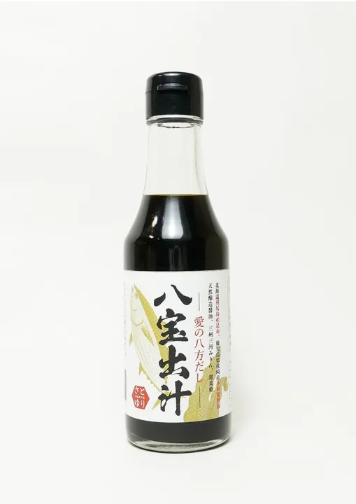『八宝出汁』(通称:愛の八方だし) 200ml 1620円(税込) ※要冷蔵品 5つの厳選素材と3つの愛を合わせた『八つの宝』から生まれた、究極のお出汁です。 5つの厳選素材:仕入先 ①利尻昆布:北海道利尻島 神成 誠 (漁師) ②本枯節鰹節:鹿児島県枕崎市 的場水産 ③天然醸造醤油:兵庫県養父市 大徳醤油 ④三州三河みりん:愛知県碧南市 角谷文治郎商店 ⑤甜菜糖:神奈川県逗子市 自然食品 陰陽洞(加工) 3つの愛 ①製造方法を伝授してくださった札幌すすきの料理屋女将悦子ママの愛 ②心を込めて厳選素材を作ってくださった生産者さんの愛 ③「愛の八方出汁レッスン」を受講してくださった子育てママ達との助け愛・支え愛 素材本来の旨みを凝縮した、奥深い味わいを実現いたしました。 一般的な麺つゆよりもお出汁の割合が多い為、少量でもお料理の味を格段に向上させます。 また、塩分量も控えめで、添加物も一切入っておらず、健康に配慮して丁寧に手作りさせて頂いております。 「滋味深い味わいで、至福のひと時を」 ~お料理の紹介例~ そのままで美味しい: 卵かけご飯、冷奴、納豆のタレ、お刺身、蕎麦つゆなど 他活用方法: お浸し、ごま和え、だし巻き卵、海鮮漬け、きんぴらごぼう、すき焼き、親子丼、牛丼、肉じゃが、筑前煮、野菜炒め、しょうが焼き、しゃぶしゃぶ、おでん、炊き込みご飯など など幅広くご活用頂けます。 ※税込1,620円以下の価格設定はお控えください。