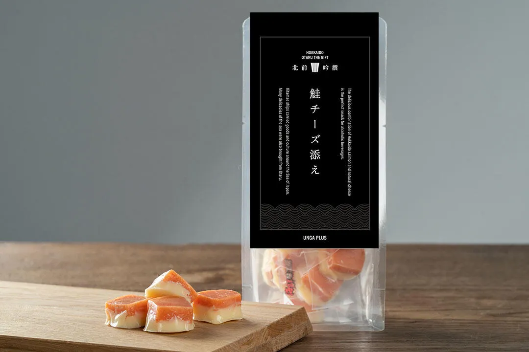 北海道産の鮭とクリーミーなナチュラルチーズのハーモニーについついお酒も進みます。 日本海を巡り物資と文化を運んだ北前船。小樽からも沢山の海の幸が運ばれました。そんな海の幸の旨味を凝縮した、特製おつまみ燻製シリーズです。一つ一つ真空パックの個包装になっている、食べやすい一口サイズ。ビールや日本酒によく合います。