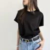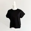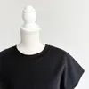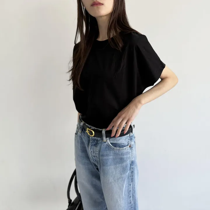 【日本製】コットンポンチ_フレンチスリーブ_カットソーブラウス ブラック