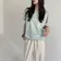 【日本製】コットンポンチ_フレンチスリーブ_カットソーブラウス ミント
