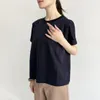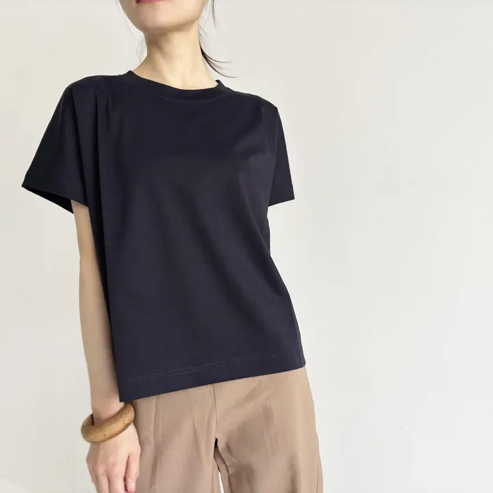 【日本製】コットンポンチ_フレンチスリーブ_カットソーブラウス ネイビー