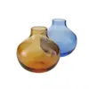 落ち着いた色合いのアンバーと、鮮やかなロイヤルブルーが目を引くフラワーベース。 庭で咲いた小さな花や、公園に咲いてた小さな花をそっと一輪だけ飾っても絵になる花瓶。 小ぶりながらもしっかりと存在感もあり日常生活に彩を加えてくれるアイテムです。 職人が型吹きで仕上げており、一つ一つの表情が違うことが特徴です。 特殊な製法でコーティングを施し、程よい発色をした「カラーガラス」を使用しています。