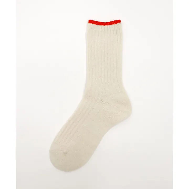 【1Pソックス】ウール混 トップカラー クルーソックス【レディース】 03 アイボリー Sサイズ:22.5-24.5cm