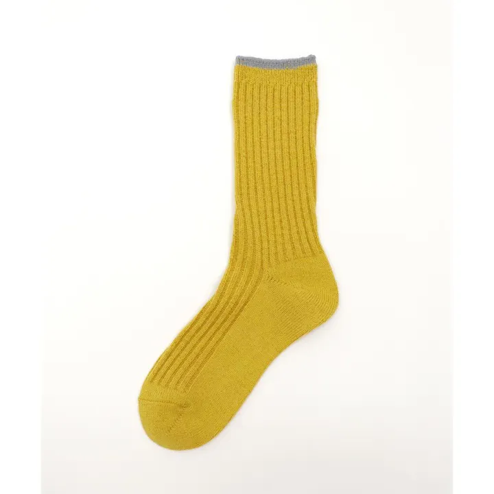 【1Pソックス】ウール混 トップカラー クルーソックス【レディース】 37 マスタード Sサイズ:22.5-24.5cm