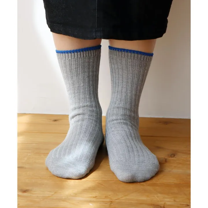 ウール混の少し厚手リブソックス☆ 履き口のカラーリングがポイントの高級感あるリブソックス(ウール約10%) シーズン:秋 冬  TAWARA たわら タワラ 靴下 ソックス ウール あったか 温活