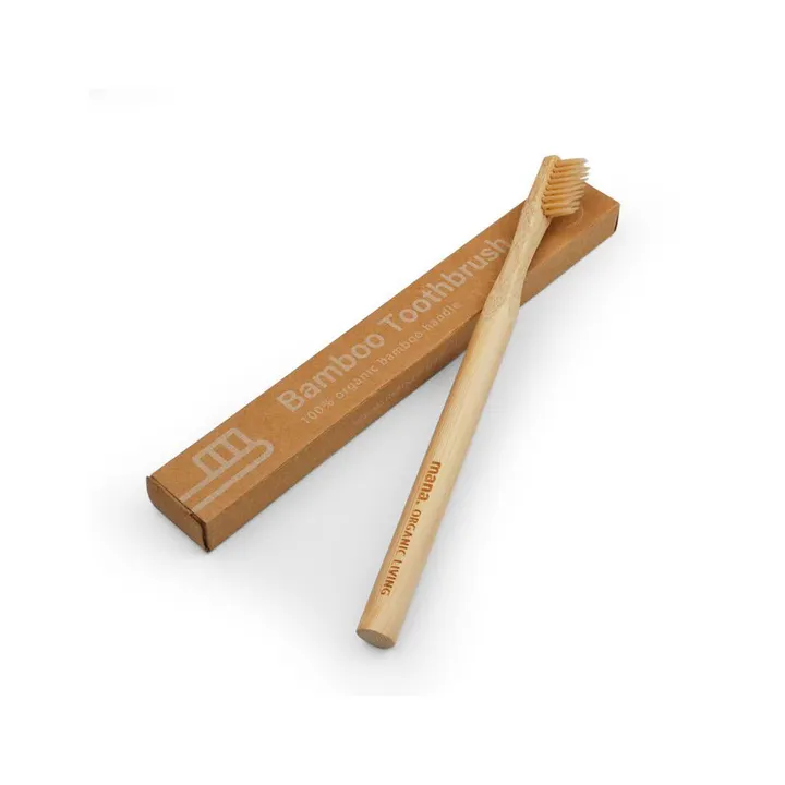 世界中で毎年約35億本が消費されているプラスチックの歯ブラシ。 リサイクルができないため、莫大な量のゴミを排出し海洋ゴミの原因にもなっています。mana.ではそのような環境問題を考慮しながら、機能性とデザイン性のある歯ブラシを作りたいという思いで誕生したのが初商品となる竹歯ブラシです。竹は3年で収穫できその成長の早さと、他の植物に比べCO2を多く吸収する役割からサステイナブルな素材として注目されています。mana.では、素材や生産過程の背景にもこだわり、環境、社会、経済分野の利害関係者の合意によって支持された、責任ある森林管理の原則と基準に基づく国際森林認証制度FSCを取得したオーガニック竹を使用しています。 厚みのある本体は、持った時の感覚がフワッと軽く、しっかり握れるデザイン。ブラシ部分は、動物保護(ビーガン)の観点から豚毛や馬毛を使用せず、BPAフリーの超極細毛ナイロンとなっております。使用後はブラシの部分のみペンチで抜き取り、適切に処理をしてください。