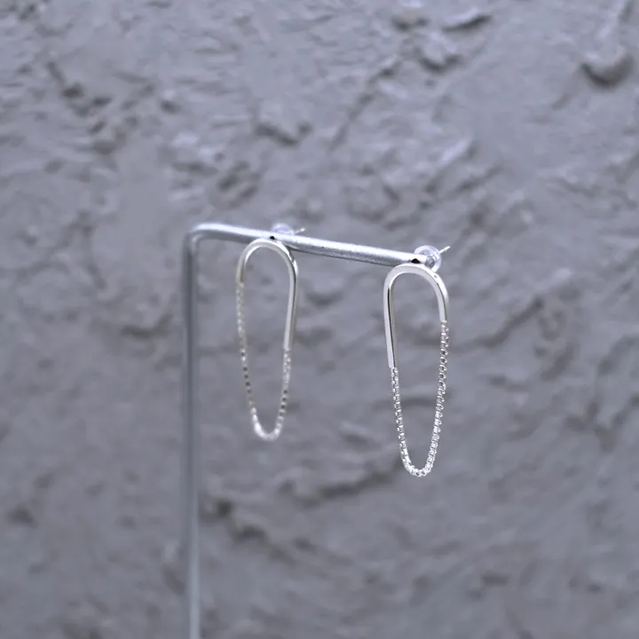 Pierced Earring from unbalance collection キラキラチェーンピアス。 チェーンが揺れるとチェーンがキラキラと光ります。 耳元を華やかに見せてくれます。