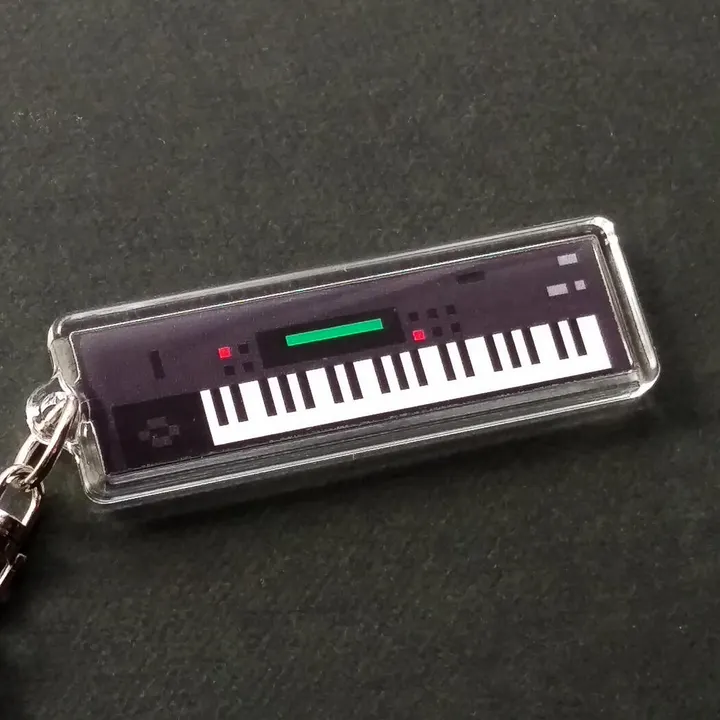 シンセサイザーをモチーフにしたアクリルキーホルダーです。 ドットを使いアイコン風カッコかわいいキーホルダーに仕上げました。 クリアで上質なアクリルにデザインシートを埋め込んでいます。 表面がシンセアイコン、裏面がLCDキャラクタ液晶デザインとなっています。 お気に入りのバッグやレッスンバッグ、機材ケースにつけてもいいかもしれません。 シンセ好きが反応するかもしれませんね♪ <商品内容> 05:PCM SYNTHESIZER ワークステーションシンセをイメージ。 こ、これは渋すぎる! シンセキーホルダー 05:PCM SYNTHESIZER×1