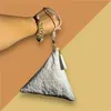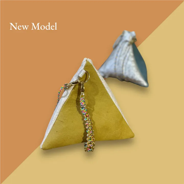 ピラミッド2way ポーチ :ヴィーガンパイナップルレザーxオーガニックキャンバス  <GEOMETRIC SERIES>Pyramid 2way porch :Pineapple leather x Organic canvas x Natural dye PEARL WHITE