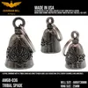 アメリカ製ガーディアンベル社製ガーディアンベルです。 MADE IN USA アメリカ製 交通安全 魔除け 御守り ガーディアンベル アメリカのライダーの間には、事故や、転倒の原因は「道路にひそむ悪魔」によるいたずらだという伝説があります。悪魔は走る者に悪戯やトラブルを運んできます。このベルは美しい音色で悪魔たちを追い払うと言われ愛されています。そんな悪魔のいたずらを防ぎ、御守りとなるのが、守護者のベルという意味を持つガーディアンベル。 日本でも鈴の音(ね)は神道では魔除けの音と言われています。ピューター製の鈴でいい音色でガーディアンベルはデザインも様々あります。 またガーディアンベルにまつわる伝説として、プレゼントとして送られたベルの効果は、自分で手に入れたものの2倍になると言われています。 それゆえに彼氏・彼女・友達・家族へのプレゼントとしての人気も非常に高まっています。 シルバーアクセサリーのようにおしゃれに装着できて素敵な音色を奏でるガーディアンベル。 バイカー以外にも自転車や旅・交通安全のお守りとしてお使いいただけます。 カバン・ランドセル・キーホルダー・ペットの首輪等に付けてお使いください!! ※タイラップ等でバイクのフレームにも簡単に取り付けできます。 アメリカンモデルだけではなく、旧車ファン、レプリカライダーまで、さらにバイクだけでなく、自転車や車にもピッタリな御守りとなっています。 アクセサリーとしても人気で、アイディア次第で車体だけでなく、キーホルダーや鞄など、どこにでも付けておしゃれに楽しめます。