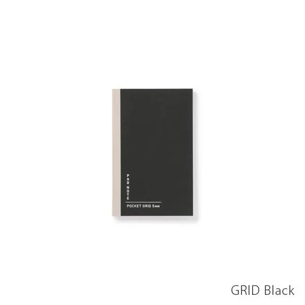 PAD NOTE POCKET|2つ折りの紙を束ねて製本したメモパッドのように使えるポケットサイズのノート GRID/Black