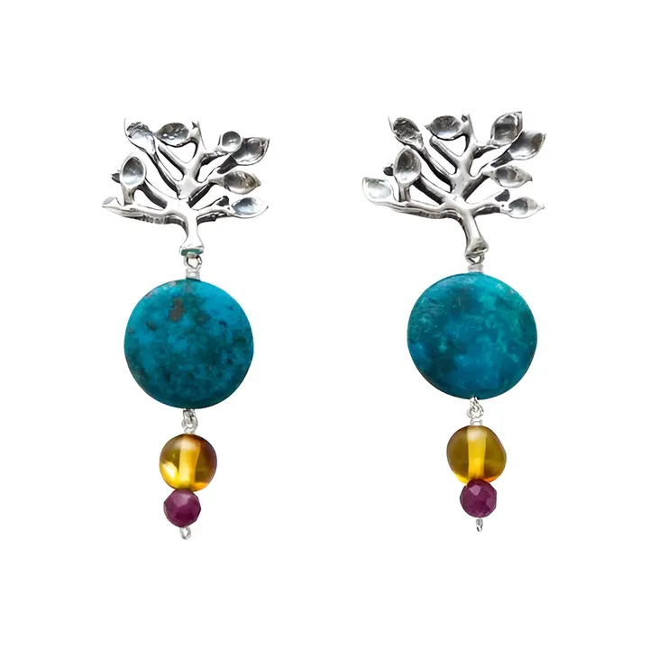 Aretes Tierra Divina|生命の木のピアス(シルバー・ターコイズ・天然石)