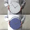 どんな角度からも見やすく調整できる時計 幾何学的な文字盤に、ネイビーの本体に革のベルト、ホワイトには木のベルトで北欧モダンな印象に。 掛けと置きどちらも可能なデザイン。