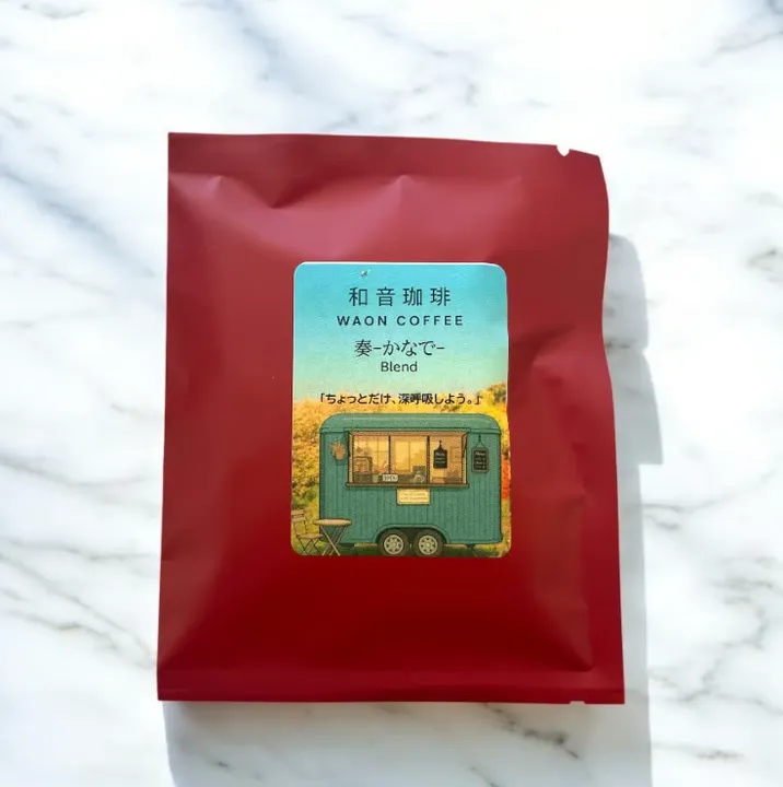 「奏(かなで)」は、和音珈琲の名前が広く知られるきっかけとなった、看板ブレンドです。その名のとおり、コーヒーの香りと味わいのハーモニーを奏でる、しあわせな時間をお届けしたいという想いから生まれました。エチオピア産の豆を中心にブレンドした中深煎りで、華やかなフルーティーな香りと、後味にほんのりと残る甘みが特徴です。やさしくも奥深い味わいで、コーヒー初心者から愛好家まで多くの方に親しまれており、和音珈琲の世界観を象徴する一杯となっています。