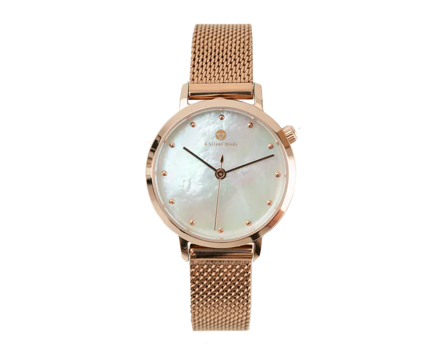 ケース:316Lステンレス 盤面:マザーオブパール ベルト:メッシュステンレス ムーブメント : 日本製クオーツ