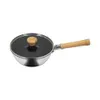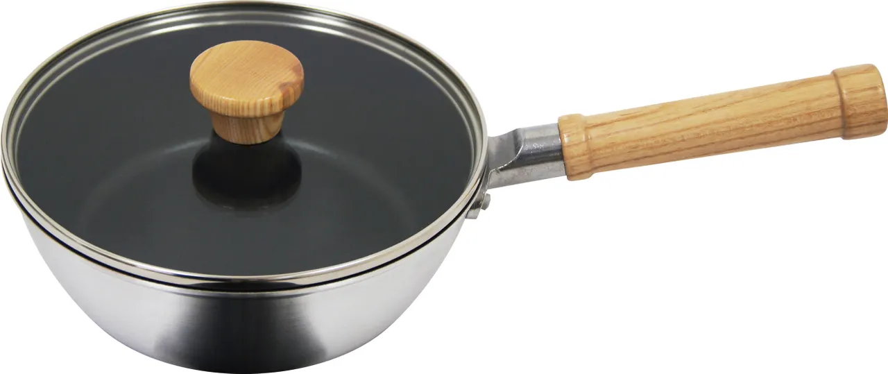 本体:アルミニウム合金、本体底面:鉄・アルミニウム溶射(はり底)、ハンドル:木材、ガラス蓋:全面物理強化、ガラス蓋ツマミ:木材
