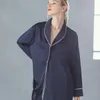 サテン パジャマ レディース ルームウェア 冬 長袖 (上下セット) chelcy-s-2-3 M ネイビー