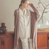 【デザイン・シルエット】 気品溢れるパイピングデザインのサテントップス。 シルエットはスタイルバランスが良く、女っぽさを引き立てます。 気品溢れるサテンロングパンツ。 落ち感のある生地が縦ラインを強調し、美脚効果を高める一着に仕上げました。 さりげない縦スリットも女性らしさを引き立てます。セットアップでお楽しみください。 【素材・サイズ感】ゆとりのあるリラクシーなシルエットのパジャマシャツは パイピングを効かせ、クラス感を添えました。サテンならではの上質な光沢がリラクシーな 穿き心地ながらも女性らしさを纏う大人のムードを演出します。