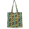 気軽にアフリカンプリントを楽しめる、エコバッグシリーズ。 カラフルなアフリカンプリントを使用し、たっぷりと物が入る正方形のエコバッグです。 内側に4つと外側にチャック付きのポケットがついているので、細かいアイテムの整理整頓もばっちりです。 裏地が付いているので、PCなどの重量感がある持ち物もしっかりと入れられることができ、メインバッグとしてもお使いいただけます。コンパクトに折り畳むこともできるので、もちろんエコバッグとして持ち歩くこともできます。 端を内側に入れてボタンをとめることで、巾着のような形でもお使いいただけます。 コーディネートに合わせてデザインを変えてみてください。 ※在庫に限りがございます。 ※実際の製品と写真とでは、色や柄の出方が異なる場合があります。あらかじめご了承ください。 <お届け時期について> オーダー確認後、最長1週間程度で発送いたします。 <サイズ> W40cm × H40cm <総重量> 約200g <素材> コットン・PV <取扱について> 1. RICCI EVERYDAYの製品は、アフリカンワックスプリントの布を使用しています。製品製作時に布に水を通し、色止め加工を施す等、極力、水による色落ちを防ぐようにしております。但し極度な水濡れや摩擦等により色落ちする可能性がありますので、雨の日の使用はお控えいただき、十分にご注意下さい。 2. アフリカ布の柄によっては、色むらやシミがあることがありますが、こちらは布のプリント時に生じたものですので、予めご了承下さい。 3. 保管の際は、なるべく日の当たらない所に置いてください。日の当たる場所に長時間置いておくと色あせする可能性があります。 4. 過度に重いものは入れないようにご留意下さい。
