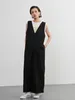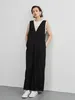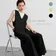 KNSO369-INを変えるだけで年中使えるサロペットパンツ・リネン混・ジャンパーパンツ BLACK/FREE